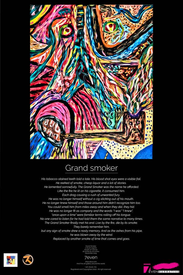 His tobacco-stained teeth told a tale. His blood shot eyes were a visible fail. He reeked of smoke, cheap liquor and a lot of stories. He lamented sorrowfully. The Grand Smoker was the name he afforded.